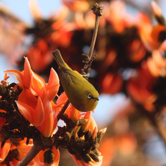 # Recently a cute & agile small bird sighted inside a garden during morning walk. We followed them and clicked some attractive photos displaying its beauty and action. It was having a distinctive white ring around its eyes, which draw our attention. Later we identified them as ‘Indian White – eye’ or ‘Oriental White - eye ’
